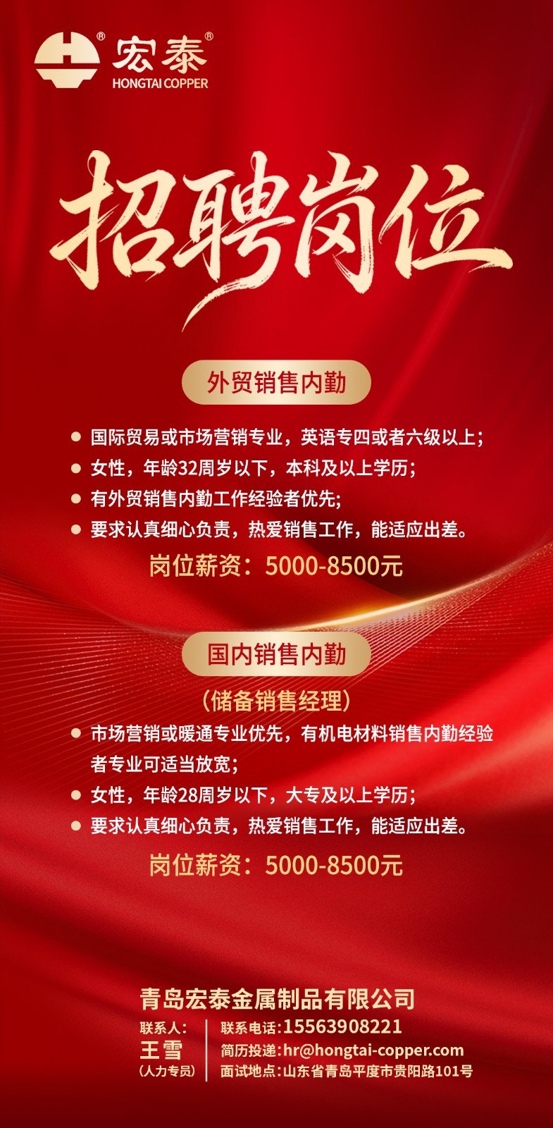 【招聘英才】宏泰大舞臺,有你更精彩!